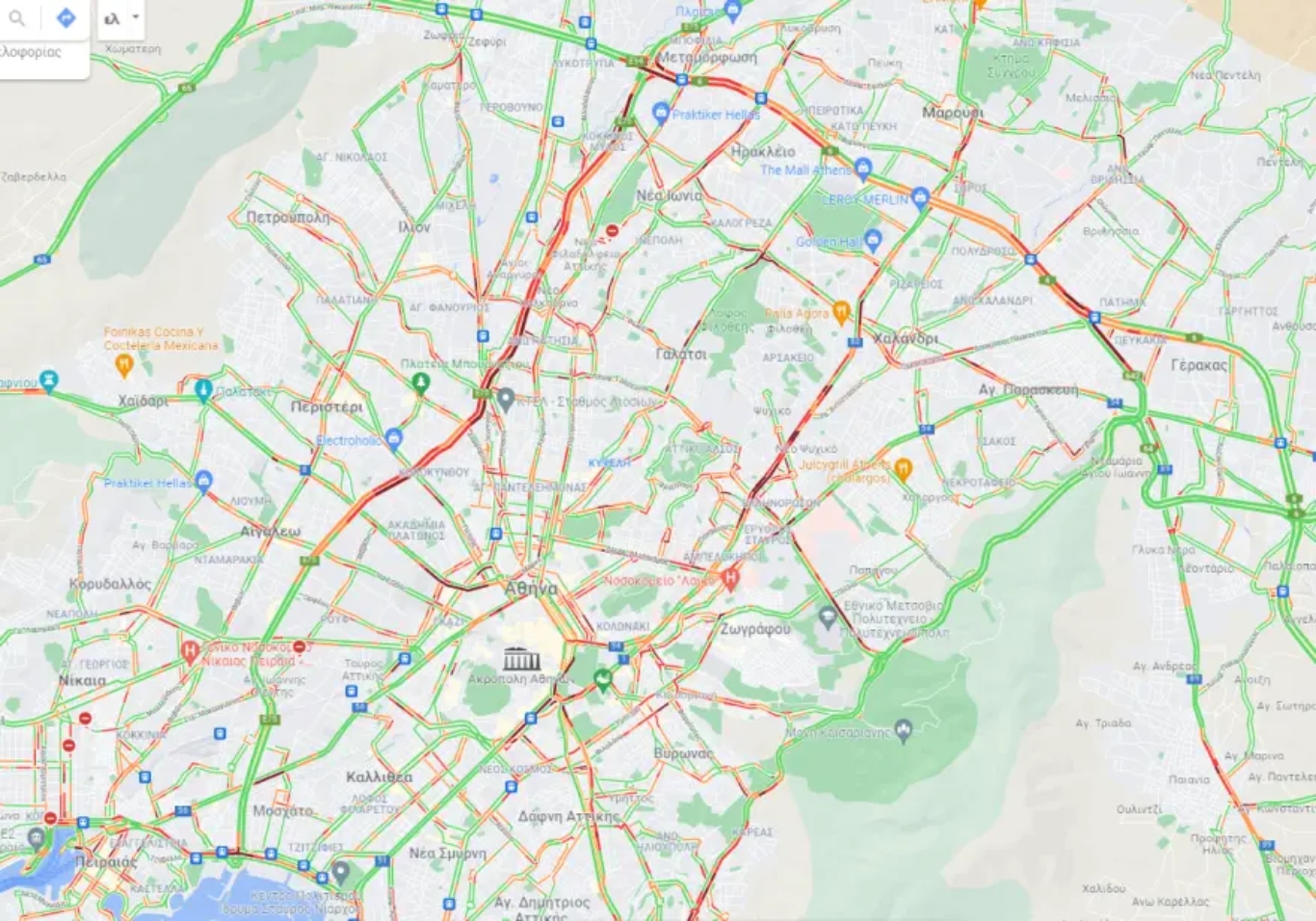Με χαμηλές ταχύτητες κινούνται επίσης τα οχήματα σε Συγγρού, Βασ. Κωνσταντίνου. Βασ. Σοφίας, Κηφισίας, Μεσογείων, Ηλιουπόλεως, Αλεξάνδρας, παραλιακή, στο ύψος των Τζιτζιφιών, και στους δρόμους γύρω από το λιμάνι του Πειραιά.