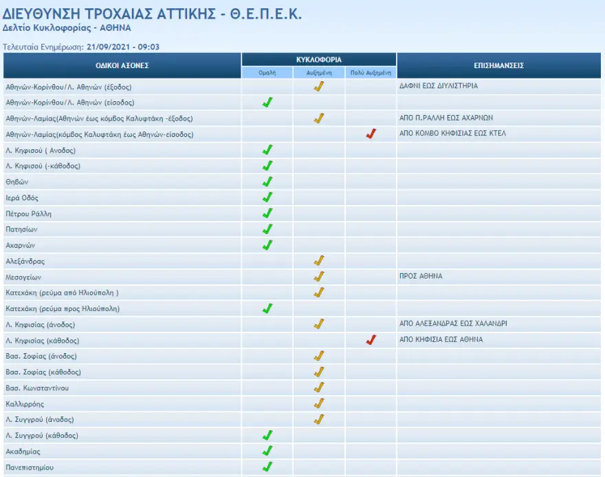 Δείτε το δελτίο κυκλοφορίας της Τροχαίας