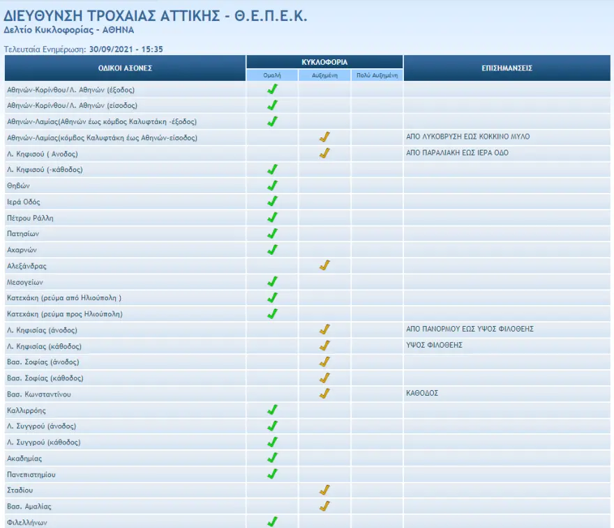 Σύμφωνα με τη διεύθυνση Τροχαίας Αττικής, κίνηση τώρα καταγράφεται στις παρακάτω οδικές αρτηρίες: