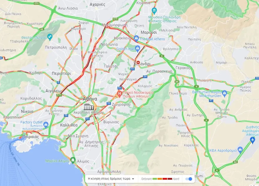 Καθυστερήσεις καταγράφονται και στη Μεσογείων τμηματικά αλλά και στο κέντρο του Πειραιά.