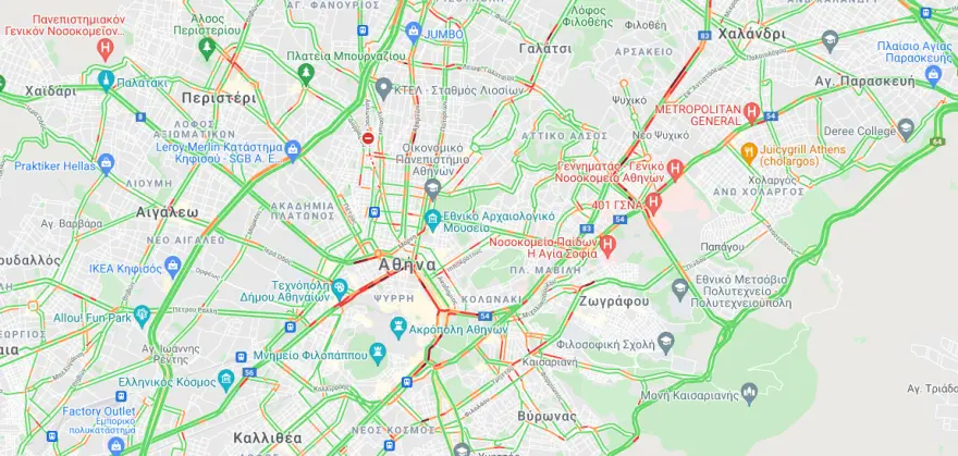 Τα μέτρα κυκλοφορίας έχουν αρθεί, όμως συμφόρηση καταγράφεται στους δρόμους πέριξ του Συντάγματος, ενώ αυξημένη κίνηση παρατηρείται και στον Κηφισό, στο ρεύμα προς Λαμία.