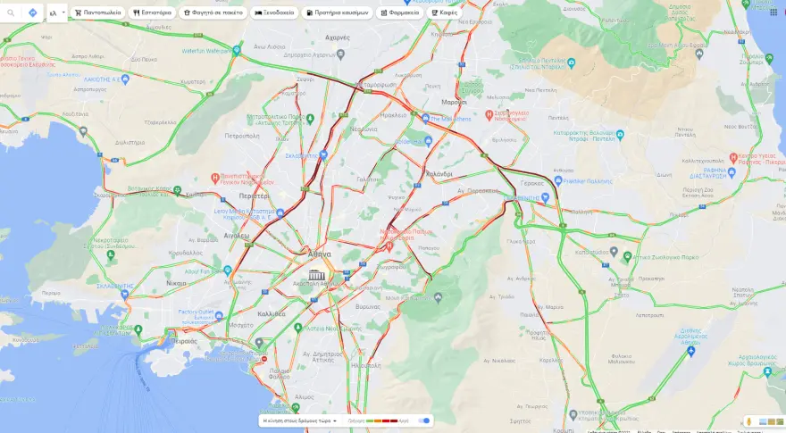 Κίνηση: Δείτε σε ποιους δρόμους της Αθήνας υπάρχει μποτιλιάρισμα (χάρτης)