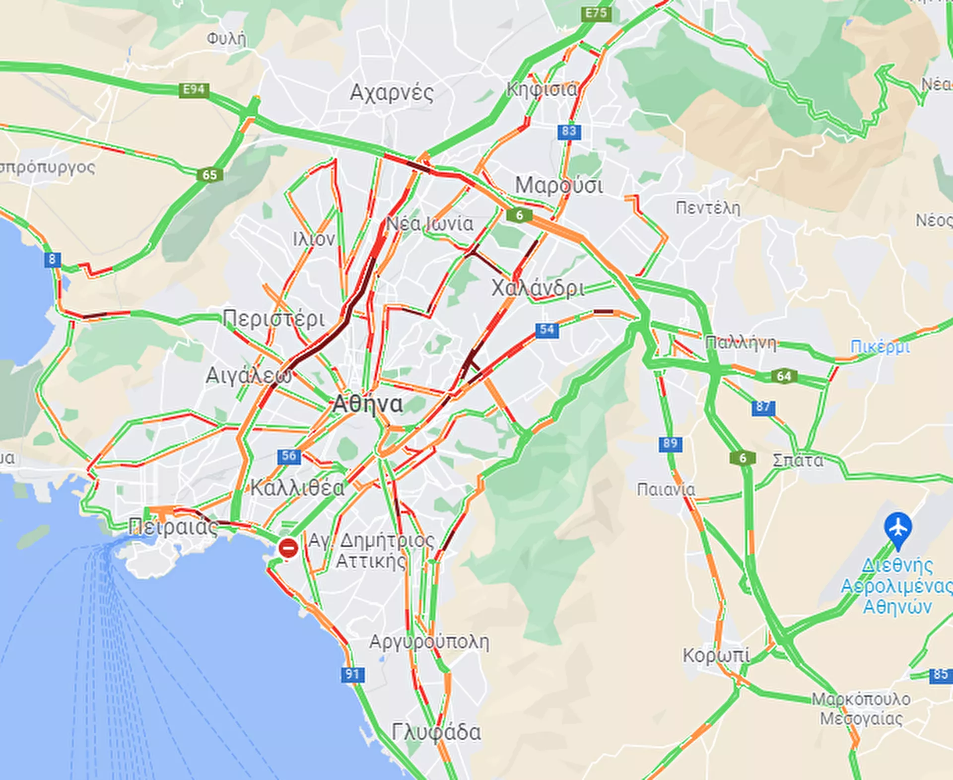 Δείτε σε ποιους δρόμους της Αττικής υπάρχει αυξημένη κίνηση (χάρτης)