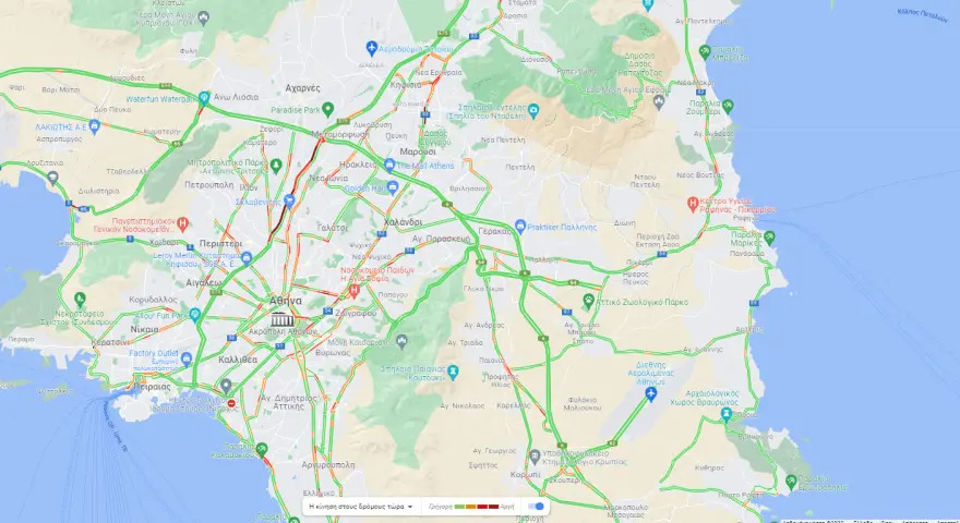 Σύμφωνα με επίσημη ενημέρωση από την Τροχαία, η κίνηση στην περιοχή είναι άκρως αυξημένη, με τους οδηγούς να κινούνται με χαμηλές ταχύτητες.