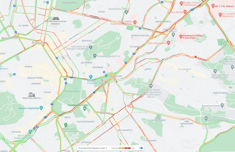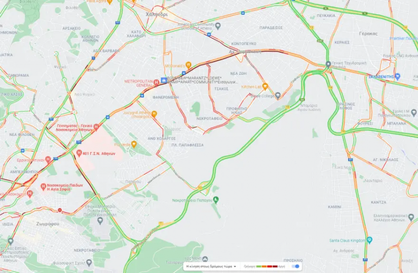 Κίνηση καταγράφεται και στη λεωφόρο Κατεχάκη στο ρεύμα προς Γλυφάδα, αλλά και στη λεωφόρο Μεσογείων στη συμβολή της λεωφόρου με την Κατεχάκη.