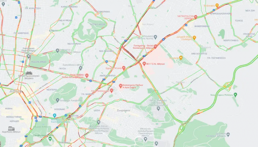 Κυκλοφοριακό «χάος» στους δρόμους της Αττικής – Πού έχει μποτιλιάρισμα (χάρτης)