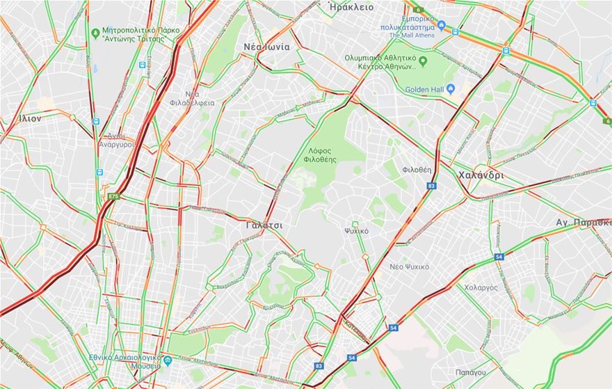 Όπως φαίνεται από τους χάρτες, στις 08:30 το πρωί στο «κόκκινο» είναι ο Κηφισός, τόσο στην άνοδο από το ύψος της Ιεράς Οδού μέχρι την Νέα Φιλαδέλφεια, όσο και στην κάθοδο από την Αττική Οδό μέχρι την Λεωφόρο Αθηνών.