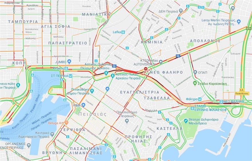 Στο «κόκκινο» είναι και οι δρόμοι στο κέντρο και στο λιμάνι του Πειραιά.