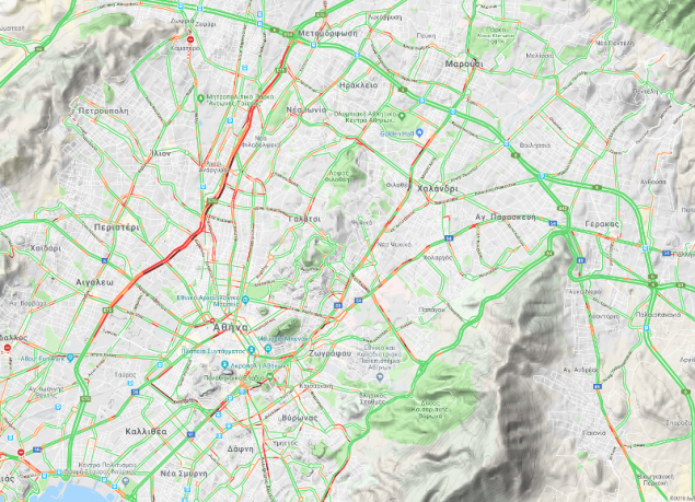 Κυκλοφοριακό χάος επικρατεί από το πρωί στους δρόμους της Αθήνας και η κίνηση είναι αυξημένη τόσο στον Κηφισό, όσο και στο κέντρο της Αθήνας.