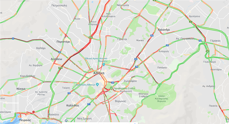 Στο «κόκκινο» η κίνηση αυτή την ώρα στο Λεκανοπέδιο Αττικής. Ουρές από αυτοκίνητα έχουν σχηματιστεί στον Κηφισό και στα δύο ρεύματα, με τους οδηγούς να κινούνται σε πολύ χαμηλές ταχύτητες.