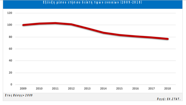 Όπως φαίνεται στο γράφημα, ο δείκτης εξέλιξης εσόδων από βραχυχρόνια μίσθωση ακινήτων (έτος βάσης είναι το 2015 = 100) έφθασε στην κορυφαία τιμή του το 2018 και αναμένεται φέτος να υποχωρήσει από το 122 στο 118, για να ενισχυθεί ελαφρώς το 2020 (στο 120) και να υποχωρήσει εκ νέου το 2021 (στο 117).