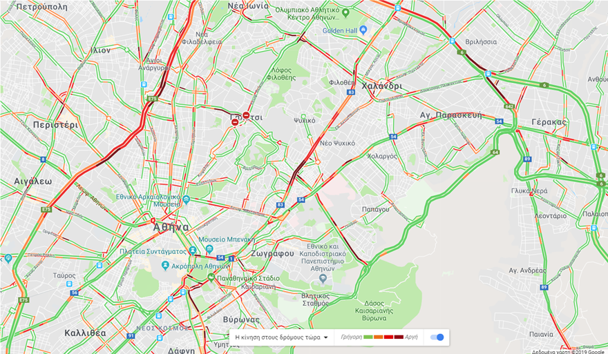 Η κίνηση γίνεται μετ’ εμποδίων και στη Μεσογείων στο ρεύμα προς Αγία Παρασκευή, στη λεωφόρο Κηφισίας (άνοδος), από Πανόρμου έως Φιλοθέη, και στη