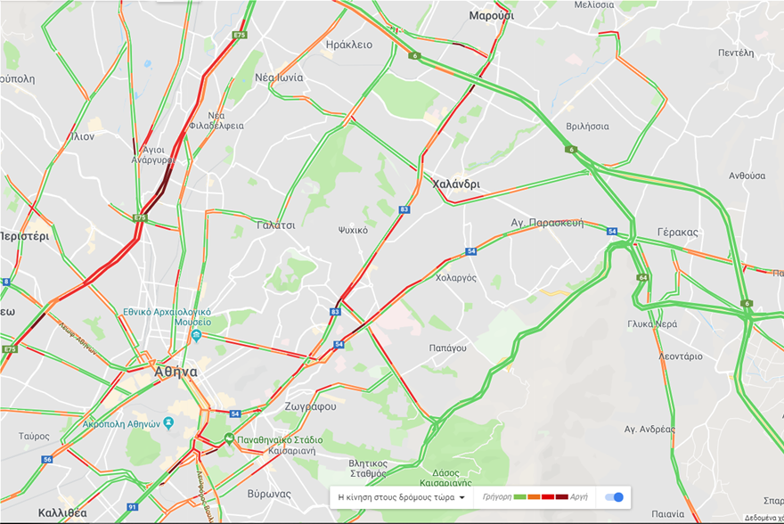 Στο «κόκκινο» βρίσκονται αυτή την ώρα η λεωφόρος Κηφισίας, σε άνοδο και κάθοδο και στην κάθοδο και η Συγγρού, από Λαγουμιτζή.
