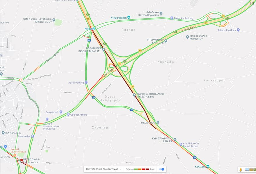 Ο λόγος είναι το απίστευτο μποτιλιάρισμα και η κίνηση με χαμηλές ταχύτητες, ενώ υπάρχουν ακινητοποιημένα αυτοκίνητα στην γέφυρα προς Μαρκόπουλο.