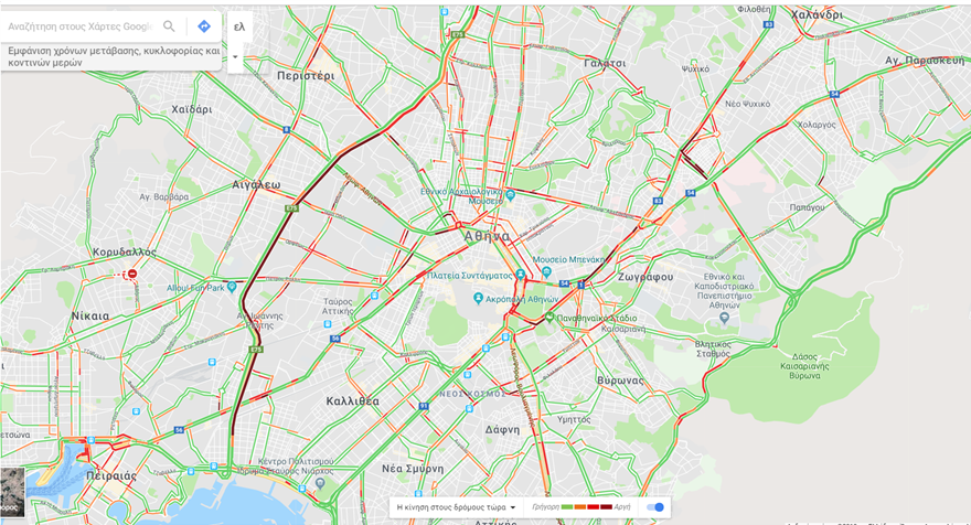 Μεγάλο μποτιλιάρισμα καταγράφεται αυτή την ώρα, μεσημέρι Τετάρτης, 15:30, στην Λεωφόρο Κηφισού. Σύμφωνα με επίσημη ενημέρωση από την Τροχαία, αυξημένη είναι η κίνηση και σε Κηφισίας(κάθοδος), Κατεχάκη, Μεσογείων, Βασ. Σοφίας (άνοδος), Βασ. Κωνσταντίνου, Βασ. Αμαλίας και Φιλελλήνων.