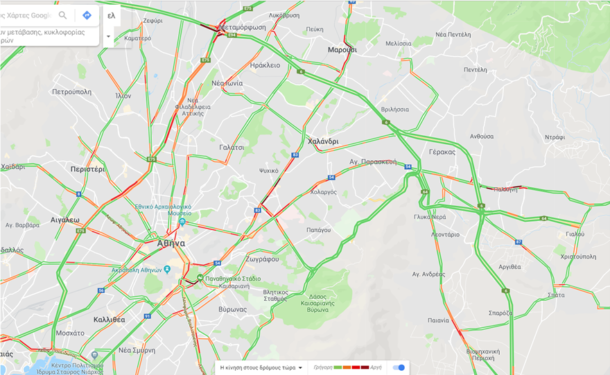 Μποτιλιάρισμα στους δρόμους της Αθήνας – Δείτε τον χάρτη της Google (φωτο)