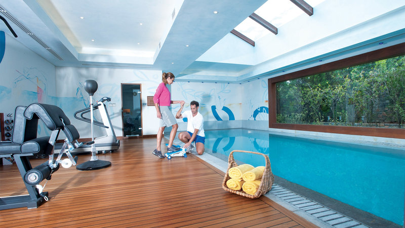 Τα δύο μαρμάρινα μπάνια έχουν θέα στην καταγάλανη θάλασσα ενώ εκτός από την τεράστια εξωτερική πισίνα, υπάρχει μια θερμαινόμενη εσωτερική πισίνα, ένα πλήρως εξοπλισμένο γυμναστήριο και ένα ξεχωριστό δωμάτιο για σπα ή σαλόνι ομορφιάς, για να μπορεί ο ένοικός του να λάμψει στο κόκκινο χαλί.