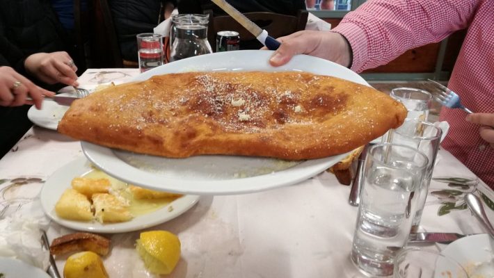 Είναι μια συνταγή που την κάνουν κατά κόρον στην Εύβοια, αλλά ο Μπατζάβαλης την προσφέρει στην πιο ωραία εκδοχή της. Και σε μέγεθος και γευστικά. Είναι σαν μια τεράστια κουρού με λιωμένο τυρί μέσα της, αλλά έχει μεγάλη διαφορά στο ψήσιμο της ζύμης. Δεν μπορώ να βρω λέξεις να το περιγράψω και δεν χρειάζεται κιόλας. Να γεμίζεις το ντεπόζιτο, να βάλεις στο αμάξι την παρέα και να φύγεις ντουγρού για Καρατζά.