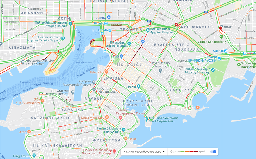 Σύμφωνα με επίσημη ενημέρωση από τη Τροχαία, αυτή την ώρα κίνηση καταγράφεται στην κάθοδο της λεωφόρου Κηφισίας στην κάθοδο, από το ύψος της Κατεχάκη, αλλά και στους δρόμους περιμετρικά του λιμανιού.