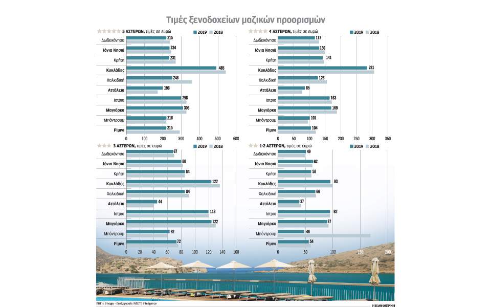 «Ενόψει και της παρατηρούμενης κάμψης διεθνώς της ζήτησης τουριστικών υπηρεσιών από τις παραδοσιακές αγορές μας (σ.σ. Γερμανία, Βρετανία), καθίσταται αναγκαία η αποκατάσταση της ανταγωνιστικότητας του ξενοδοχειακού προϊόντος, αφενός μέσω της μείωσης των φορολογικών επιβαρύνσεων της τιμής που το καθιστούν ακριβότερο σε σχέση με το ξενοδοχειακό προϊόν ανταγωνιστικών χωρών και, αφετέρου, μέσω της ισότιμης φορολογικής και κανονιστικής αντιμετώπισης με τις βραχυχρόνιες μισθώσεις», επισημαίνει το Ινστιτούτο του Συνδέσμου Ελληνικών Τουριστικών Επιχειρήσεων.