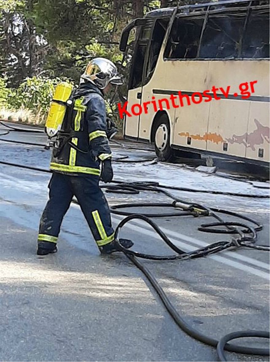 Το λεωφορείο κάηκε σχεδόν ολοσχερώς.