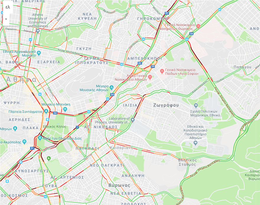 Μποτιλιάρισμα στους δρόμους της Αθήνας – Δείτε τον χάρτη της Gougle (φωτο)