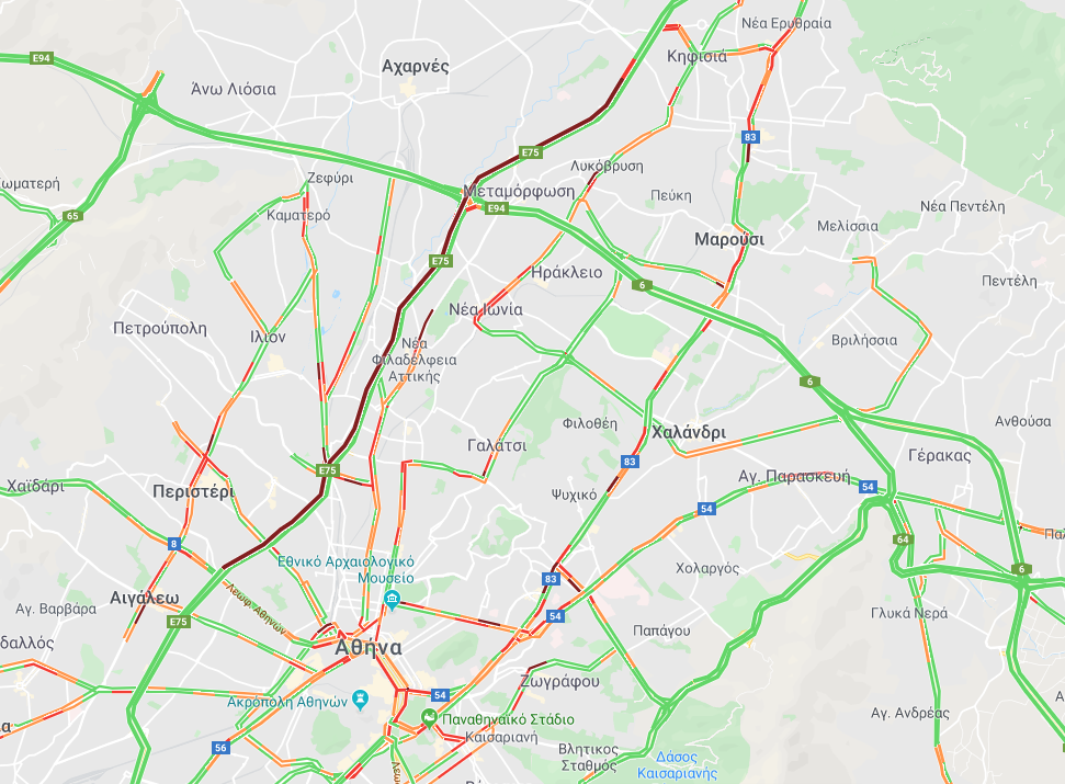 Η παρακάτω εικόνα με τον χάρτη της πρωτεύουσας να έχει «κοκκινίσει» από το μεγάλο μποτιλιάρισμα είναι χαρακτηριστική.