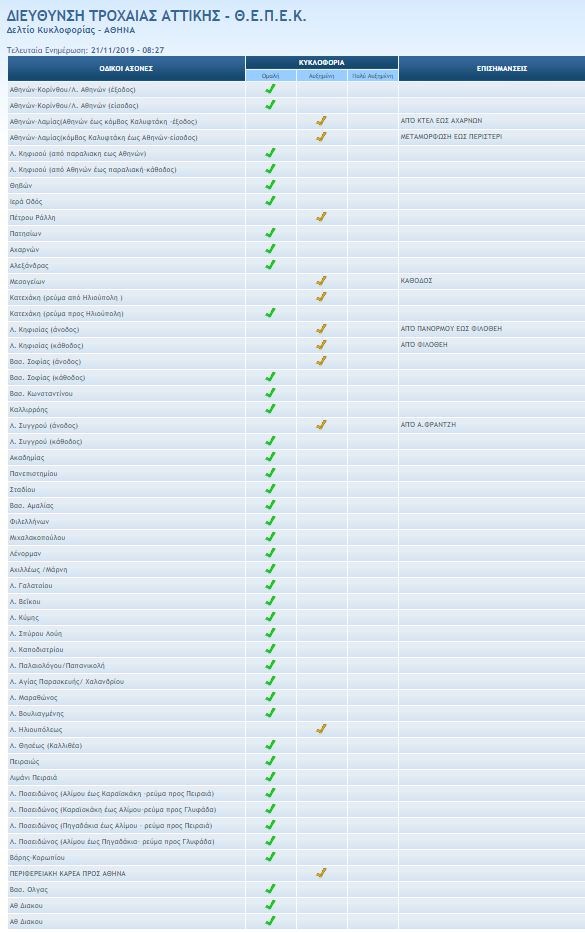 Σύμφωνα με την ενημέρωση από την Τροχαία αυξημένη κίνηση παρατηρείται στα εξής σημεία: