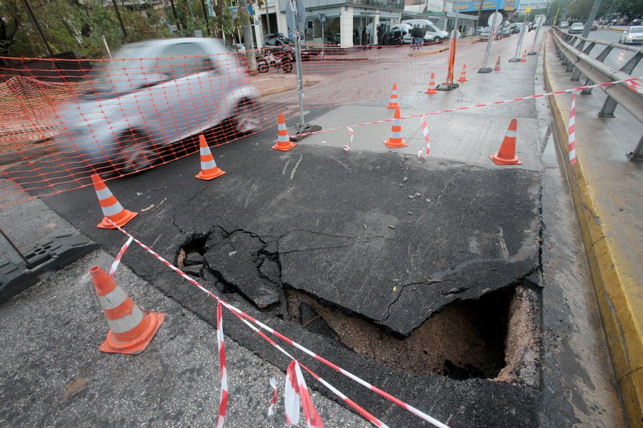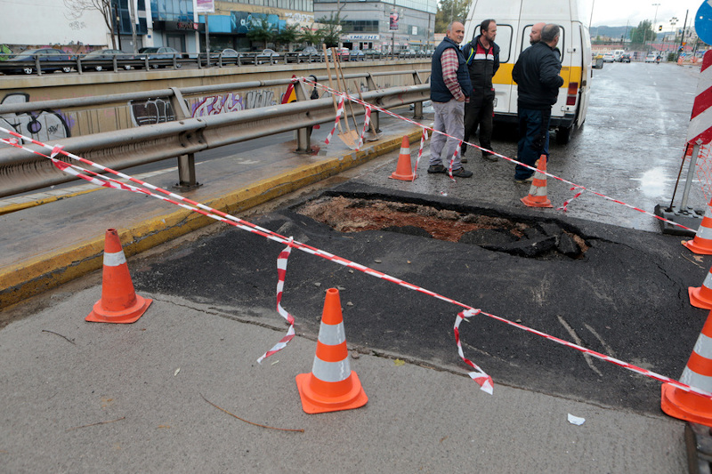 Κλειστή παραμένει η έξοδος προς Πειραιώς στην οδό Χαμοστέρνας στην δεξιά πλευρά, λόγω καθίζησης του οδοστρώματος.