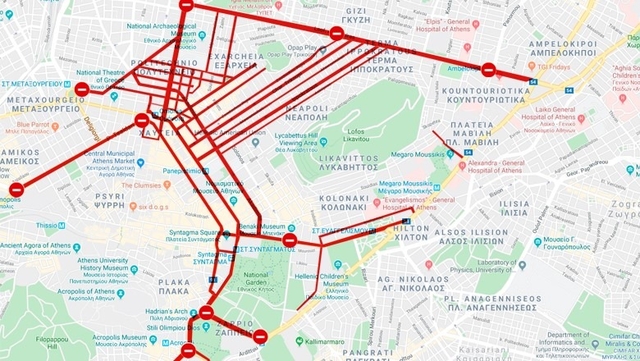 Από τις 10 το πρωί πραγματοποιούνται σταδιακές διακοπές της κυκλοφορίας των οχημάτων, ενώ από τις 5 το πρωί έχει τεθεί σε ισχύ η απαγόρευση στάσης και στάθμευσης των οχημάτους σε συγκεκριμένους δρόμους:
