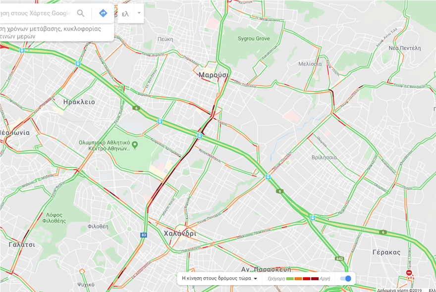 Αρκετά αυξημένη είναι η κίνηση αυτή την ώρα στο ρεύμα ανόδου της λεωφόρου Κηφισίας, από το ύψος του νοσοκομείου Υγεία, μέχρι και το Μαρούσι, σε μια διαδρομή με πολύ χαμηλές ταχύτητες για τα ΙΧ.