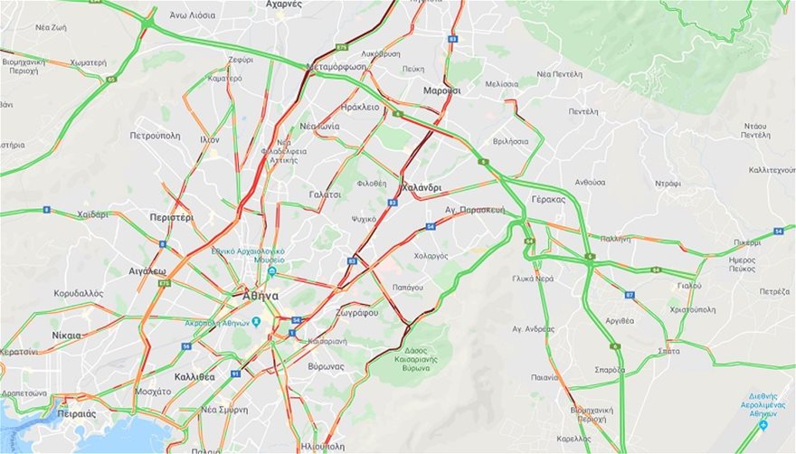 Μποτιλιάρισμα επικρατεί στην Κηφισίας, στην Άνοδο της Βασιλίσσης Σοφίας, στη Βασιλέως Κωνσταντίνου.
