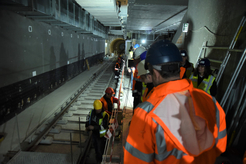 Η τετράωρη λεπτομερής επιθεώρηση ολοκληρώθηκε στο κεντρικό εργοτάξιο του Σταθμού Αγίας Σοφίας, με τον Γενικό Γραμματέα Υποδομών και τη Διοίκηση της Αττικό Μετρό να παρακολουθούν τις εργασίες των μόνιμων επενδύσεων οπλισμένου σκυροδέματος της Βόρειας και Νότιας πρόσβασης του σταθμού και να ξεναγούνται στην αποβάθρα του σταθμού.