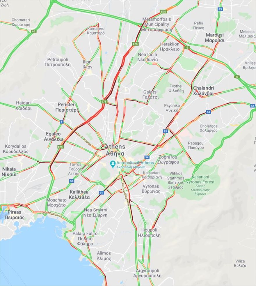Λίγο πριν τις 8 το πρωί πολύ αυξημένη κίνηση υπήρχε και στα δύο ρεύμα της λεωφόρου Κηφισού από τη Μεταμόρφωση μέχρι τον Ταύρο ενώ προβλήματα αντιμετώπιζαν οι οδηγοί στην κάθοδο της Κηφισίας, την κάθοδο της Μεσογείων, την Ηλιουπόλεως προς το κέντρο, την Αλεξάνδρας προς τον κόμβο των Αμπελοκήπων, την άνοδο της Συγγρού, την Βασίλισσης Σοφίας και την Βασιλέως Κωνσταντίνου .