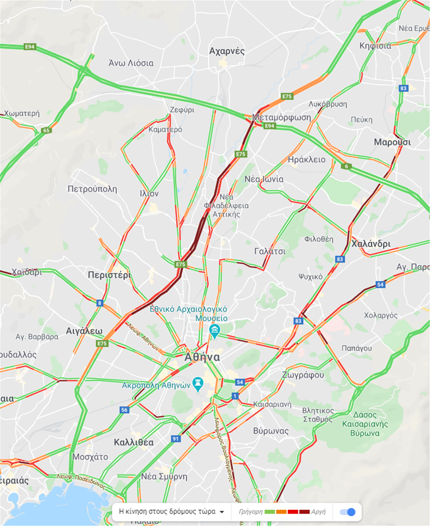 Η κίνηση στους δρόμους της Αθήνας από την Google ώρα 08:10