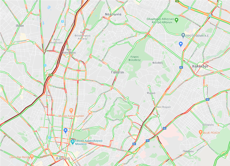 Μποτιλιάρισμα στους δρόμους της Αθήνας – Δείτε τον χάρτη της Google (φωτο)