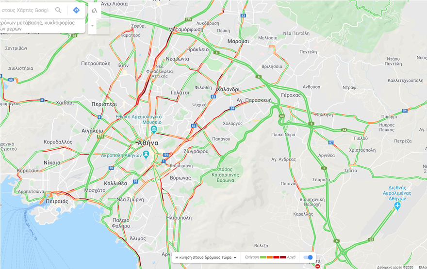Η κίνηση στους πιο κεντρικούς οδικούς άξονες της Αθήνας διεξάγεται ομαλά, ωστόσο, οι οδηγοί θα συναντήσουν μποτιλιάρισμα στο καθοδικό ρεύμα της Εθνικής Οδού Αθηνών – Λαμίας, στο ύψος της Μεταμόρφωσης, στο ρεύμα προς Αθήνα της λεωφόρου Κηφισίας, στο ύψος του Ψυχικού, στη Μεσογείων στο ύψος της Αγίας Παρασκευής και στη λεωφόρο Βουλιαγμένης στο ύψος της Δάφνης.