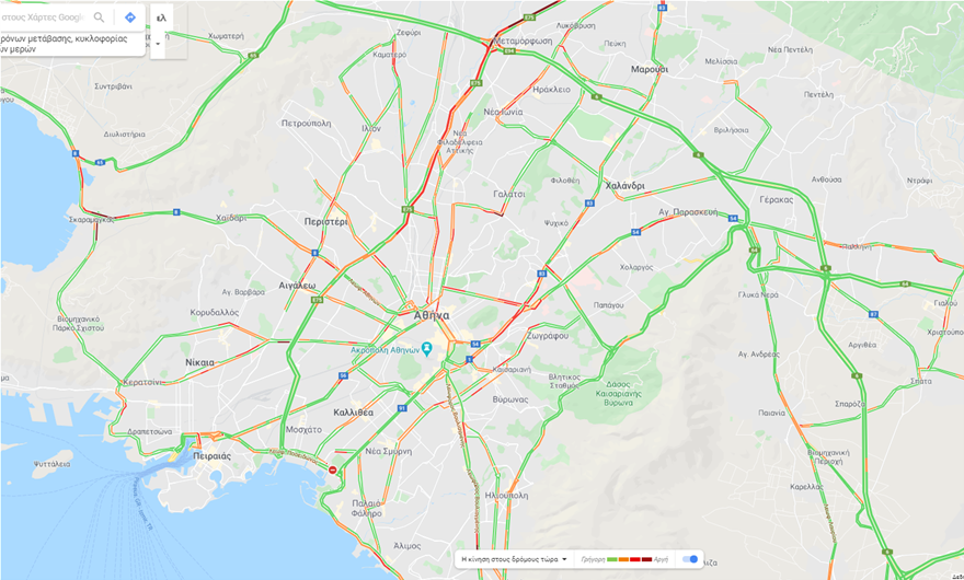 Αυξημένη καταγράφεται η κίνηση τώρα, στην Εθνική Οδό Αθηνών – Λαμίας, στο ύψος της Μεταμόρφωσης, στο ρεύμα προς Πειραιά, όπως και στον Σκαραμαγκά.