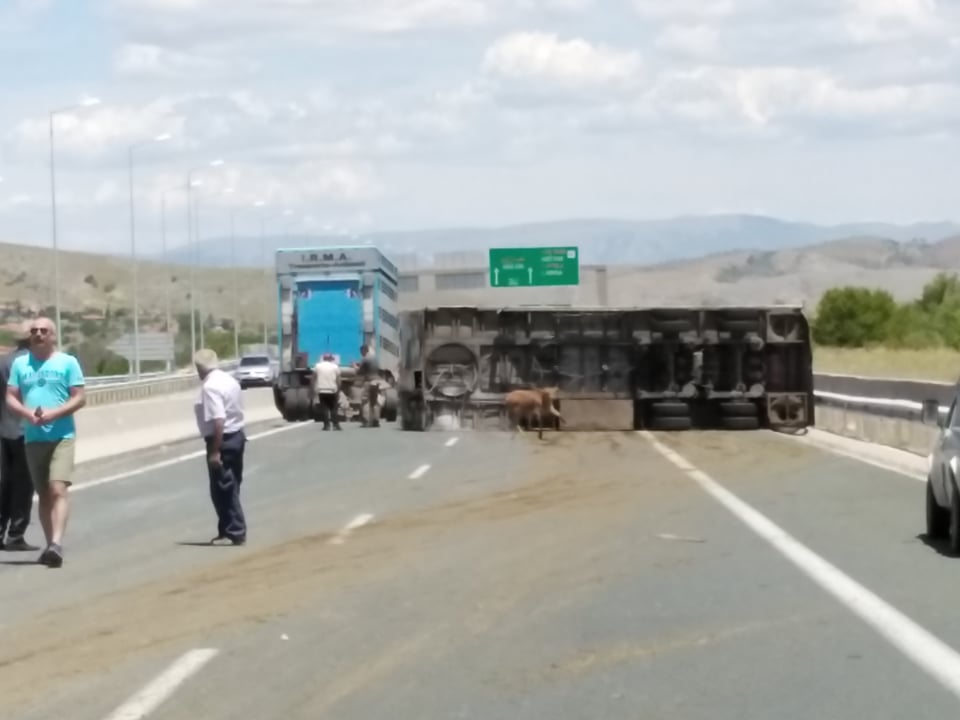 Σύμφωνα με αυτόπτη μάρτυρα, «έσκασε το λάστιχο της νταλίκας και έφυγε αριστερά στο στηθαιο. Δίπλα ήταν και ένα άλλο φορτηγό αλλά αυτό έμεινε όρθιο. Οι οδηγοί είναι και οι δύο καλά. Μια, αγελάδα είναι τραυματισμενη αρκετά. Κάποια ελαφριά και κάποια ζώα έφυγαν και προσπαθεί η αστυνομία να τα μαζέψει από την Εγνατία. Έτσι έκλεισαν και τα δύο ρεύματα για να μην γίνει και στο άλλο ρεύμα ατυχία από τα ζώα και από τα τσιμέντα που εκσενδονιστηκαν».