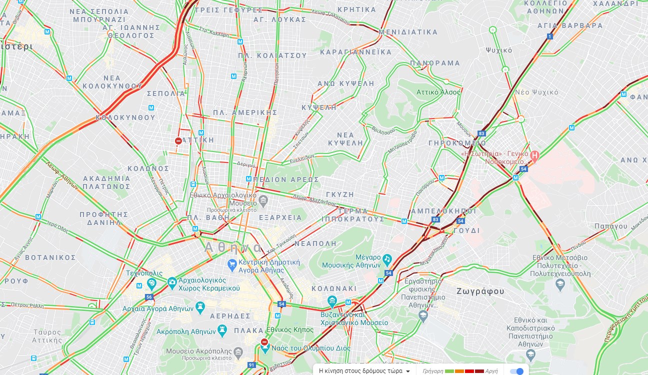 Σημειώνεται ότι στη Λεωφόρο Βασιλέως Κωνσταντίνου τα αυτοκίνητα κινούνται με πολύ χαμηλές ταχύτητες.