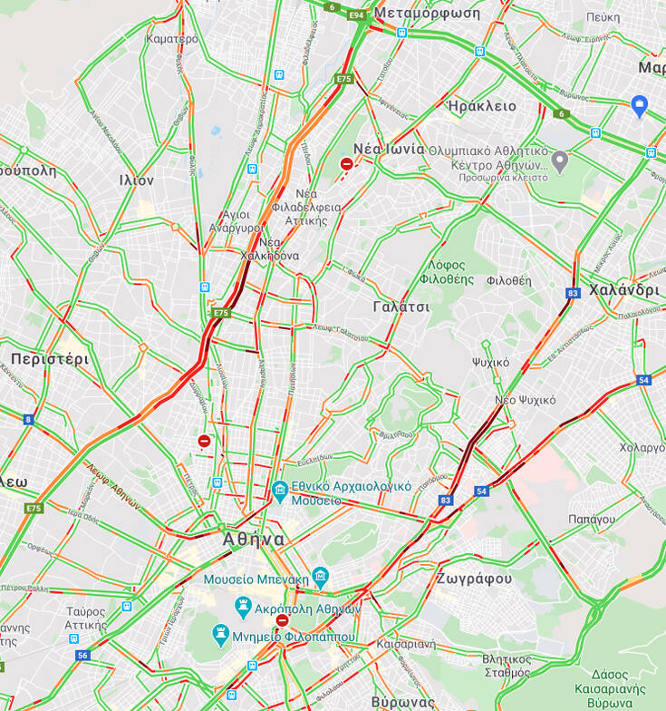 Για… «γερά» νεύρα είναι η κίνηση που επικρατεί στο ανοδικό ρεύμα της Κηφισίας, καθώς υπάρχει μεγάλο μποτιλιάρισμα που αρχίζει από το ύψος της λεωφόρου Αλεξάνδρας και φτάνει μέχρι και το Ψυχικό.