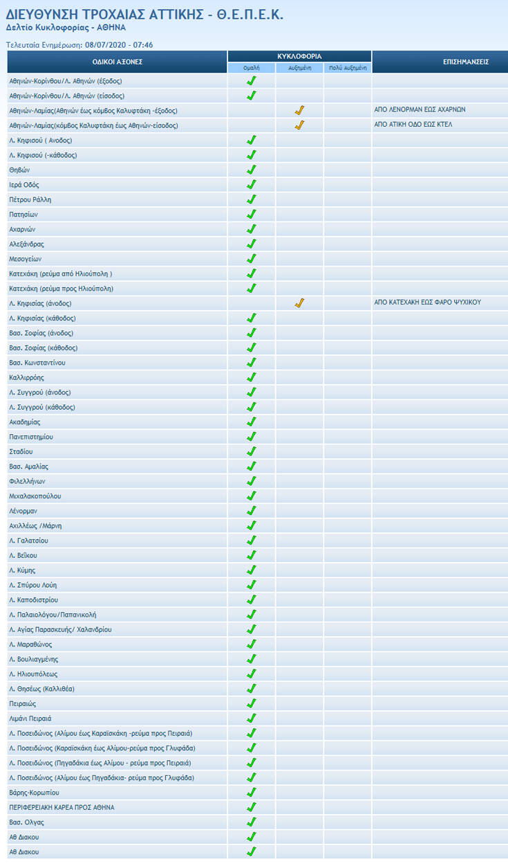 Σύμφωνα με την Τροχαία, αυξημένη είναι επίσης η κίνηση στην Αθηνών Λαμίας, από τη Λένορμαν έως την Αχαρνών στο ρεύμα εξόδου και από την Αττική Οδό έως τα ΚΤΕΛ στο ρεύμα εισόδου.