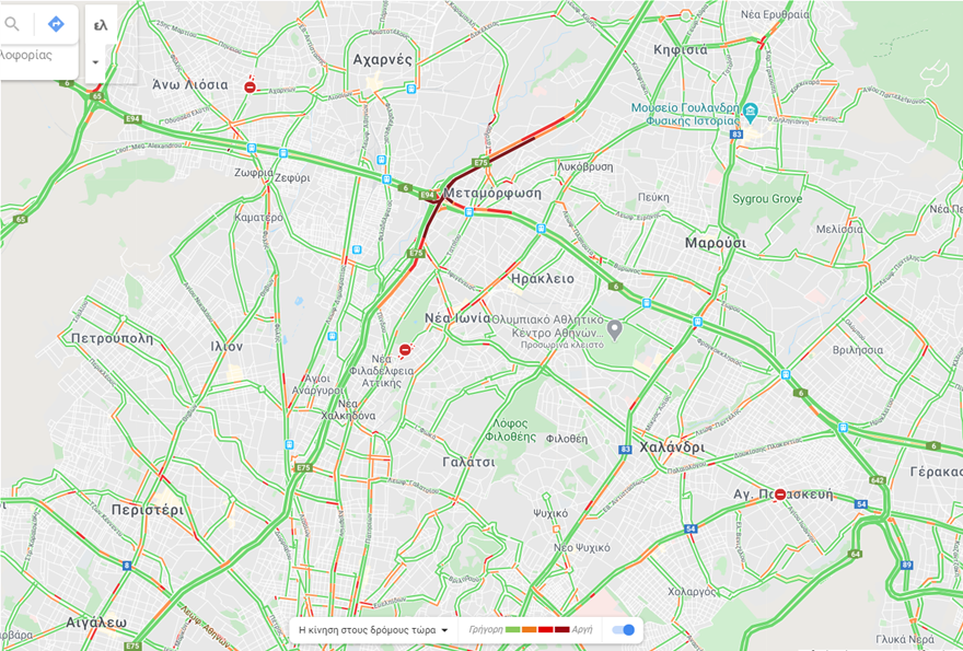 Η αριστερή λωρίδα κυκλοφορίας, στο ύψος της Κάτω Κηφισιάς, στο ρεύμα προς Λαμία έχει κλείσει και η κίνηση ξεκινά από το ύψος της Νέας Φιλαδέλφειας.