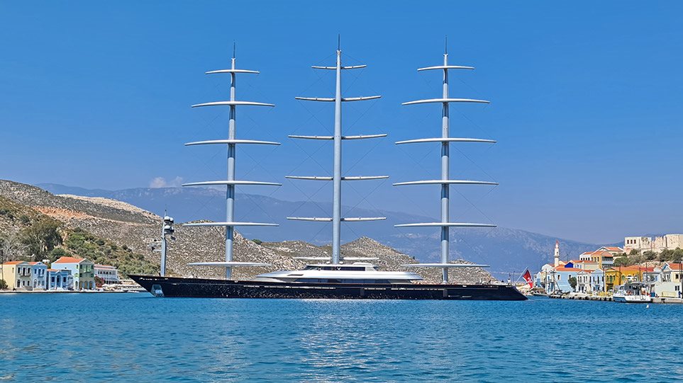 Η Ελληνοκύπρια επιχειρηματίας Ελενα Αμβροσιάδου, με το τερατώδες σε μέγεθος σκάφος της, με την εξίσου επιβλητική ονομασία «Maltese Falcon» (Γεράκι της Μάλτας), εμπνευσμένο από την ομώνυμη ταινία με τον Χάμφρεϊ Μπόγκαρτ κατέφθασε στο Καστελόριζο.