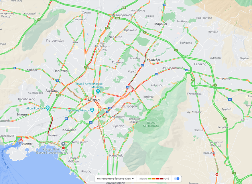 Αυξημένη η κίνηση, σύμφωνα με επίσημη ενημέρωση από την Τροχαία και στη Σταδίου.