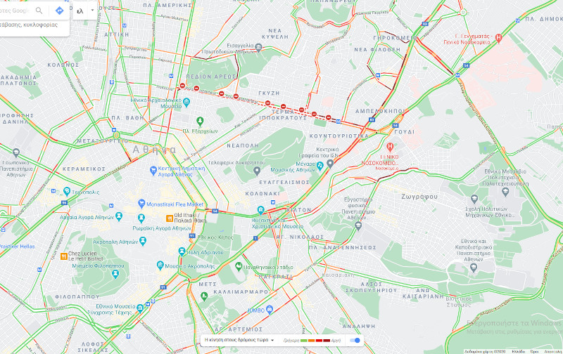 Αρκετά αυξημένη είναι αυτή την ώρα, η κίνηση στους δρόμους γύρω από το κέντρο της Αθήνας εξαιτίας των κυκλοφοριακών ρυθμίσεων που έχουν τεθεί σε ισχύ.