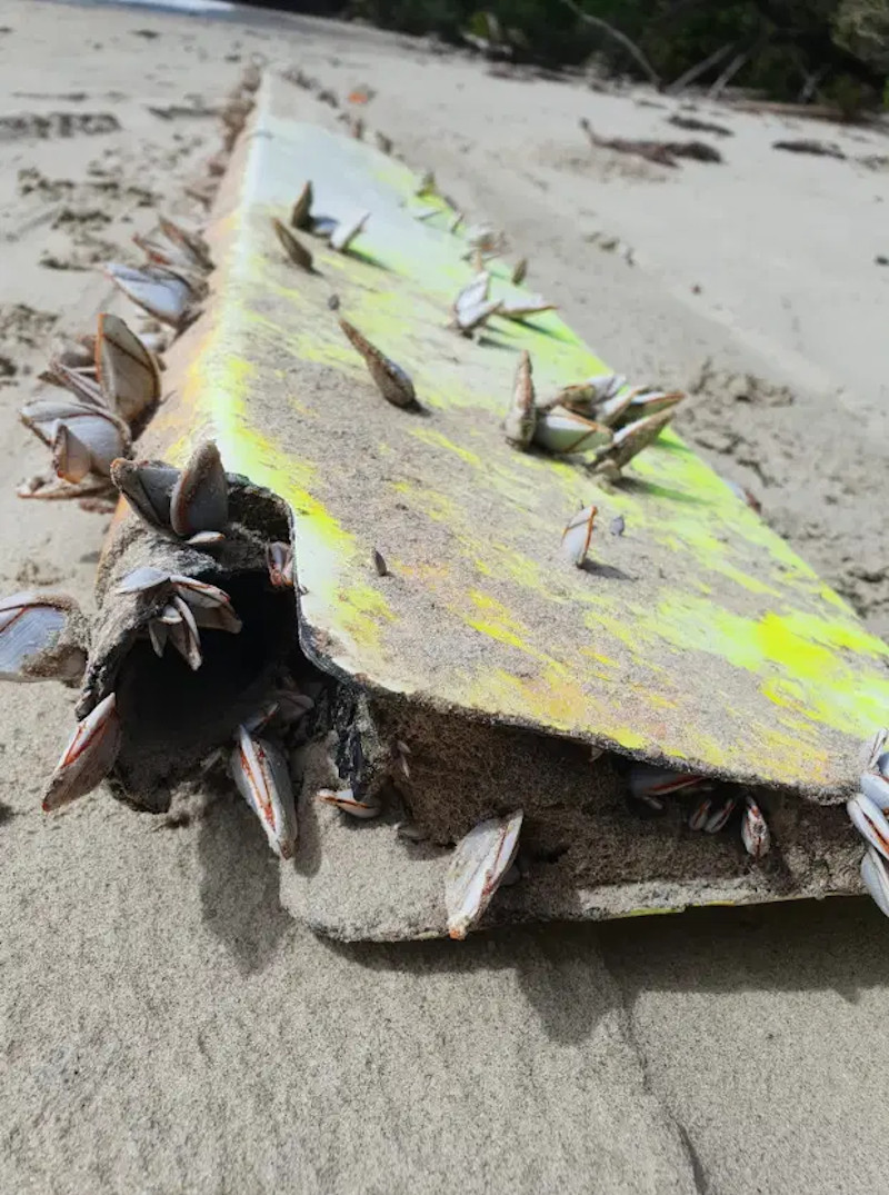 Τα συντρίμμια, που θυμίζουν πτερύγιο, είναι καλυμμένα με οστρακοειδή και άμμο κι ο Μικ Έλκοουτ νόμισε αρχικά ότι προέρχονταν από πηδάλιο γιοτ ή πτερύγια αντιστάθμισης αεροσκάφους. Αλλά όταν ανήρτησε τις φωτογραφίες στο λογαριασμό της ομάδας Aircraft Maintenance Engineering στο Facebook, ξεκίνησε νέος γύρος εικασιών από χρήστες των μέσων κοινωνικής δικτύωσης, που υποστήριξαν ότι προέρχονταν από την πτήση MH370.