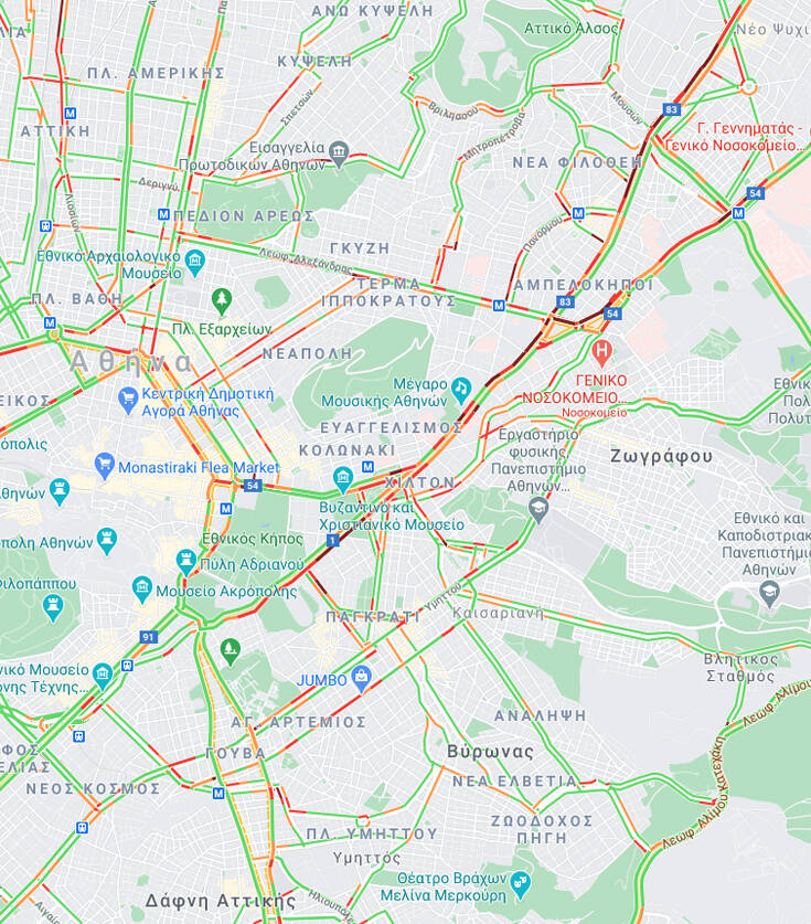Το μποτιλιάρισμα είναι έντονο στην Βασιλίσσης Σοφίας και συγκεκριμένα στην κάθοδο, ενώ έντονα προβλήματα εντοπίζονται σε Μεσογείων και Κατεχάκη.