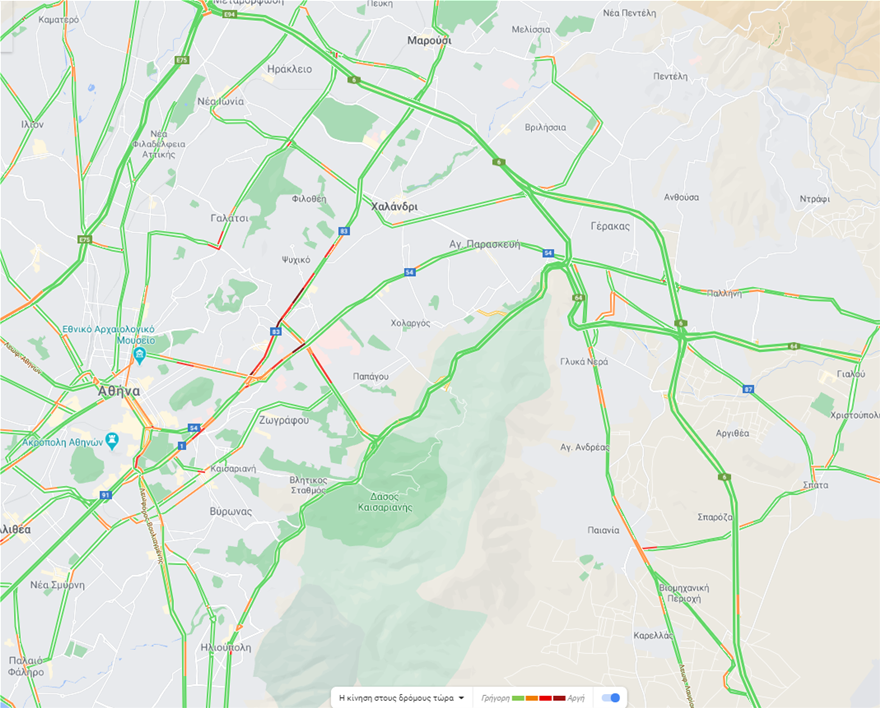 Αυτή την ώρα κίνηση υπάρχει στην κάθοδο της Κηφισίας αλλά και στη λεωφόρο Κατεχάκη.