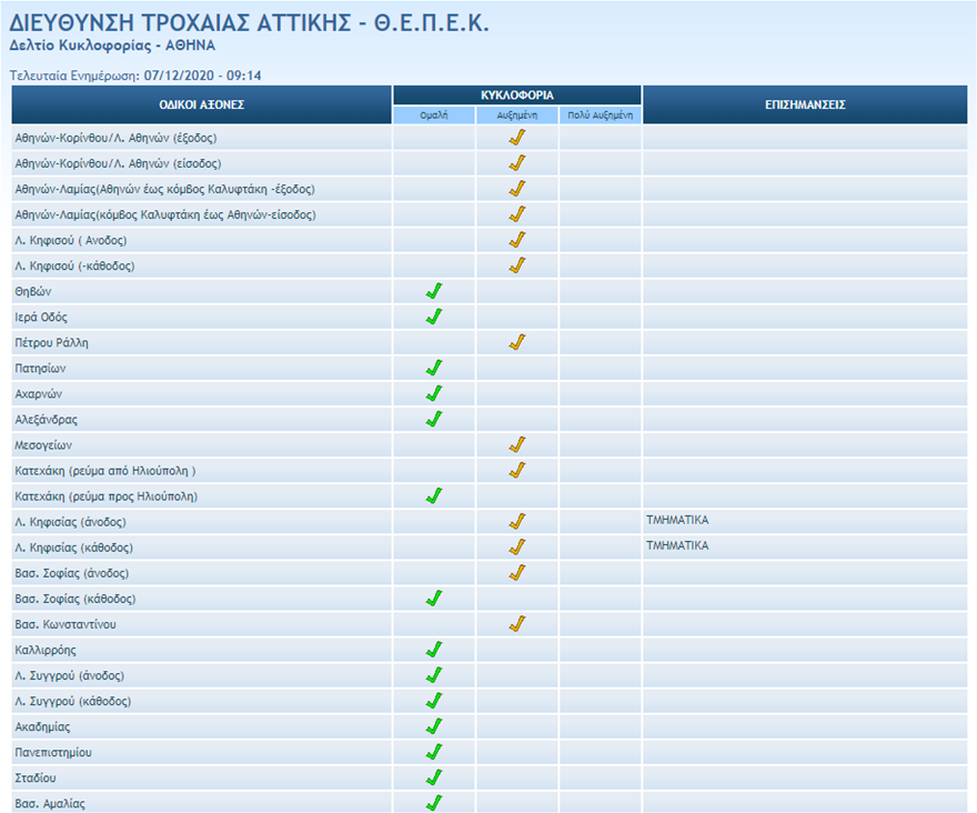 Κίνηση καταγράφεται τμηματικά και στη λεωφόρο Μεσογείων στο ρεύμα προς Αθήνα.